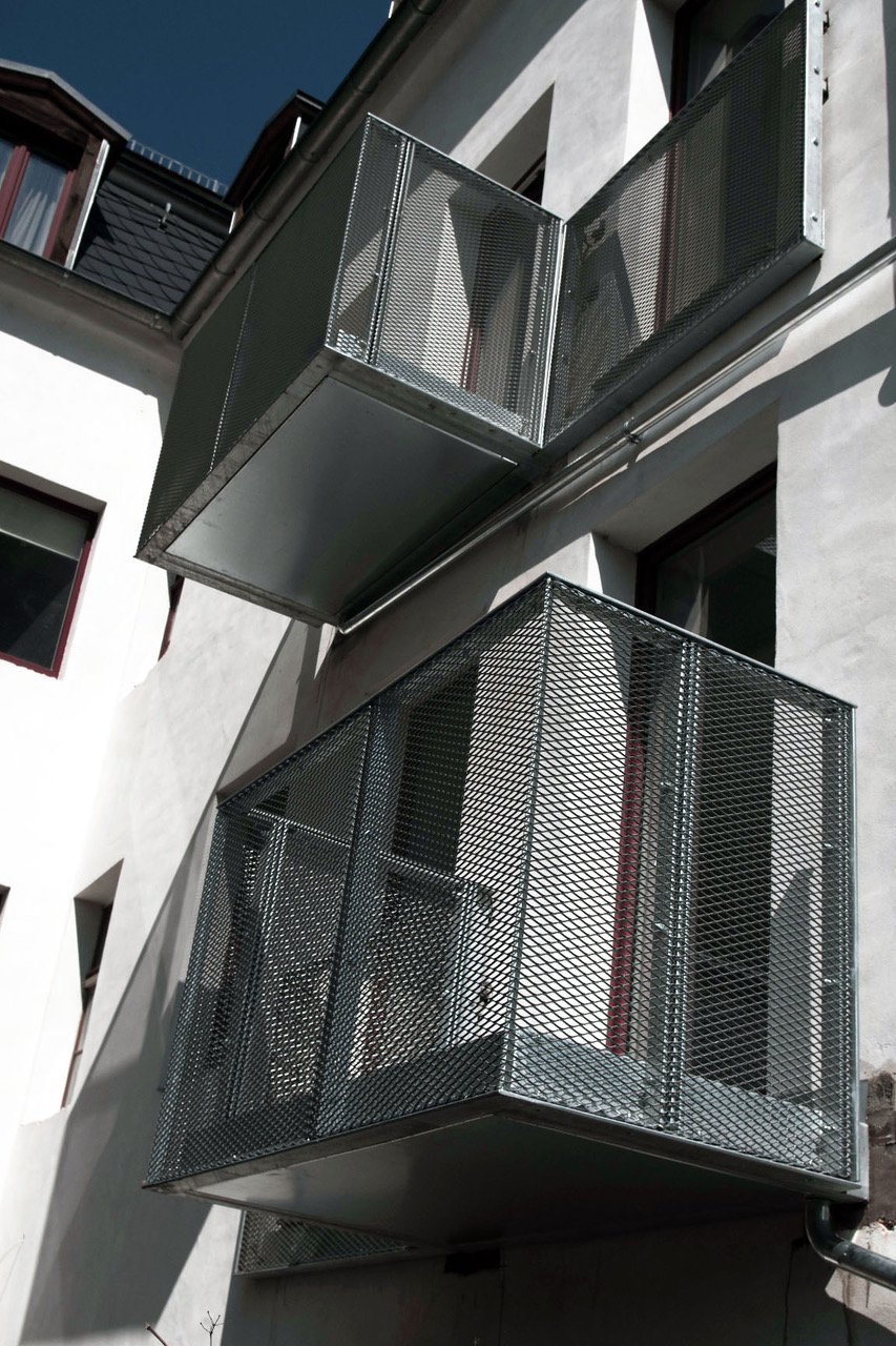 U. a. Neubau vom auskragenden Stahlbalkon zu Aufwärtung der Mietwohnungen.