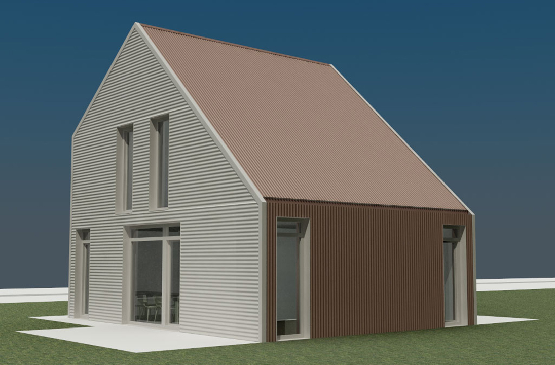 Um die Baukosten so gering wie möglich zu halten, entsteht ein kleines Gebäude, das durch eine optimierte Geometrie und ökonomisch innovative Materialität mit geringen Mitteln realisiert werden konnte.